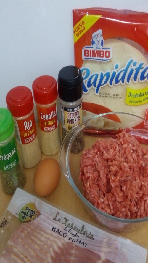 - 8 tortitas de trigo pequeñas- 500 gr de carne picada de vacuno