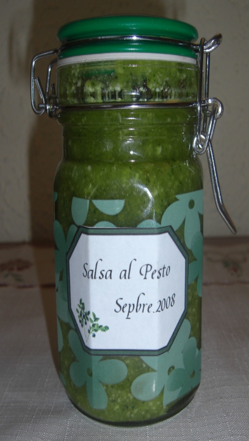 La Salsa pesto en una salsa genovesa muy conocida de Italia. La forma tradicional de hacerla es machacando los ingredientes en un mortero, pero yo la he hecho de una forma más rápida, en la picadora.Ponemos el ajo pelado en una batidora o picadora junto con las hojas de albahaca, los piñones y la sal y mezclamos hasta conseguir una pasta. En ese momento vamos añadiendo el aceite y batiendo al mismo tiempo.